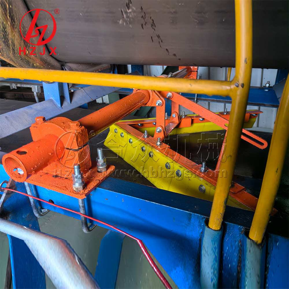 Устанавливается на верхней поверхности возвратного ремня на переднем конце заднего перенаправляющего ролика ленточного конвейера, очищает остатки на верхней поверхности возвратного ремня, чтобы предотвратить попадание остаточных материалов в хвостовой ролик, вызывая повреждение конвейерной ленты и роликов или отклонение конвейерной ленты.